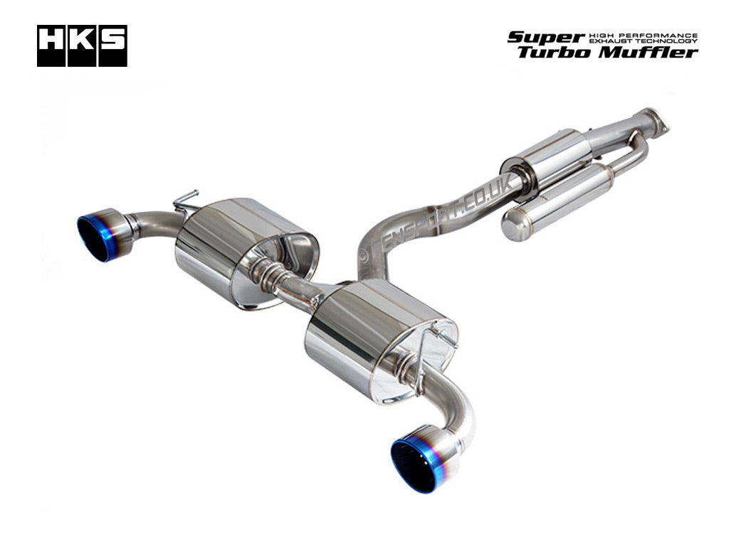 HKS Super Turbo Muffler exhaust is designed with a "straight structure" for low back pressure, low sound levels and maximum ground clearance.
