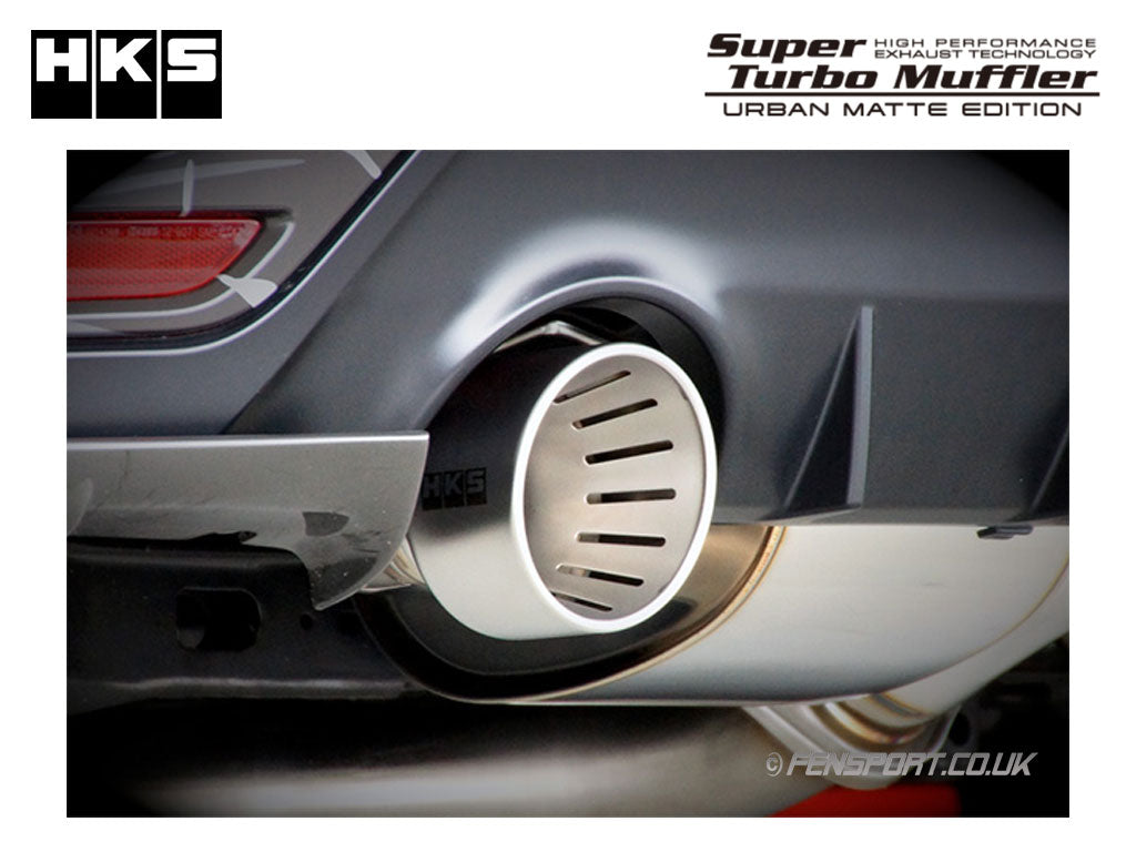 HKS Super Turbo Muffler exhaust is designed with a "straight structure" for low back pressure, low sound levels and maximum ground clearance.