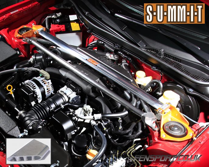 The Summit front strut tower brace improves chassis rigidity by reducing flex. By using monocoque aluminium triple tube shaft, the brace is not only lightweight but also exceptionally strong.