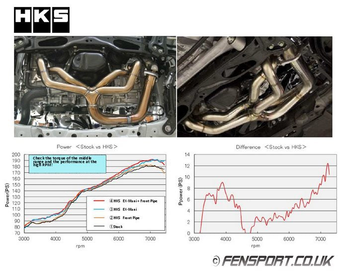 The HKS 4-2-1 manifold is equal length and produces more power from 3,000rpm onwards.