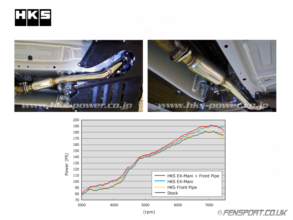 The HKS straight design front pipe includes 2 resonators to help reduce harsh exhaust sound.